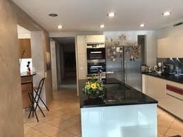 Al piano principale si trova un ampio ingresso con guardaroba e accesso di servizio per il personale, un luminoso soggiorno con camino, una moderna zona cucina/pranzo completamente accessoriata con arredi su misura ed elettrodomestici di ultima generazione. Sullo stesso livello sono presenti anche uno studio o camera per gli ospiti, un servizio e una comoda lavanderia finestrata.