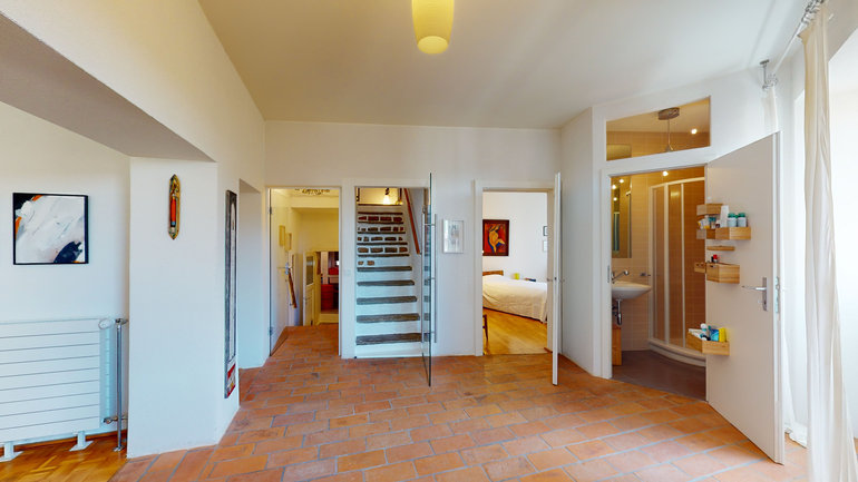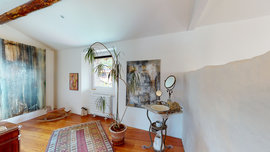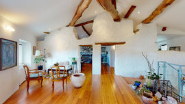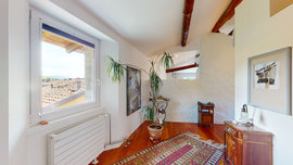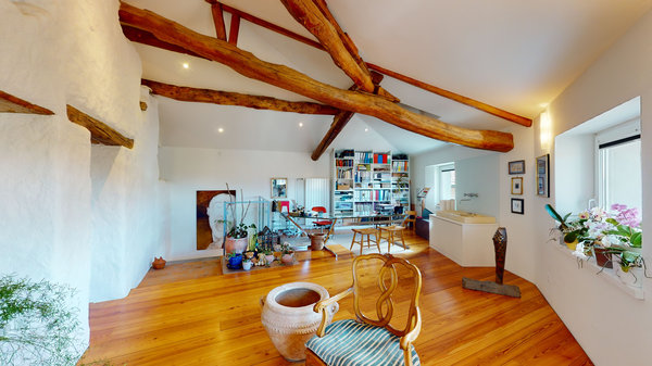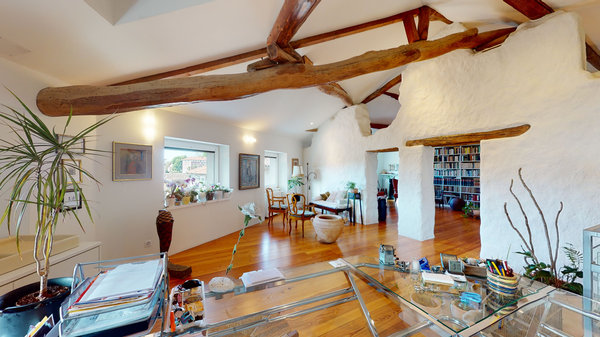 Das zweite Dachgeschoss von 90 m2 mit sichtbaren Balken vervollständigt das Haus; hier besteht die möglichkeit, eine große küche, ein bad und einen doppelbettraum einzufügen.